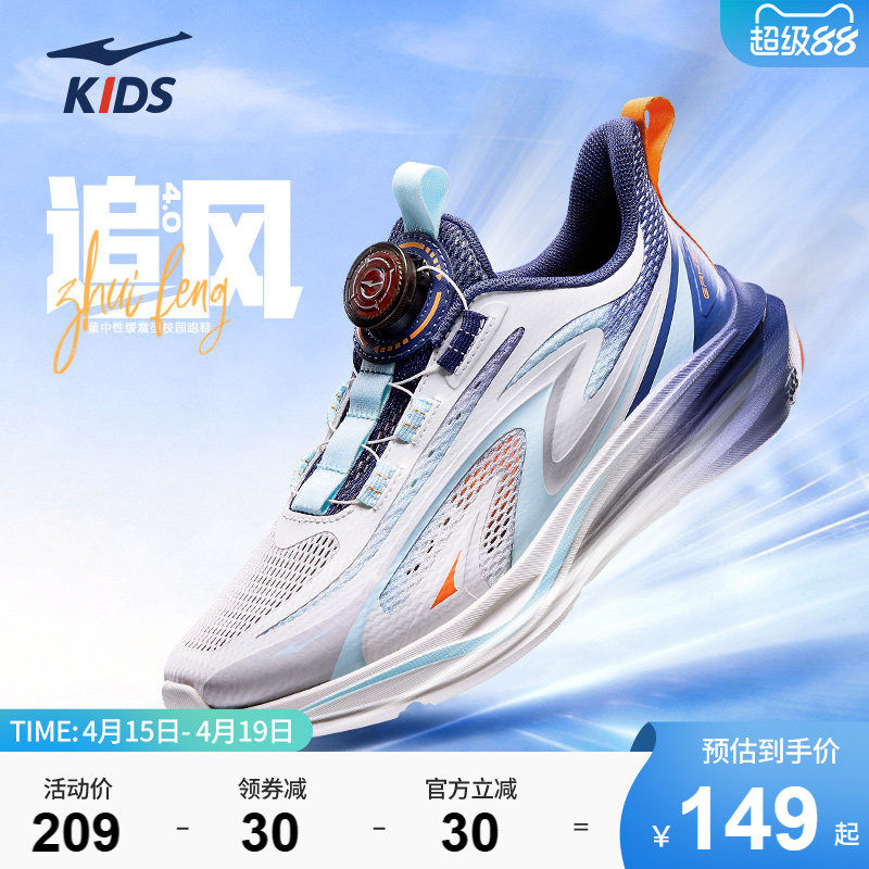追风4|鸿星尔克童鞋男童校园跑步鞋儿童透气运动鞋青少年网面鞋子