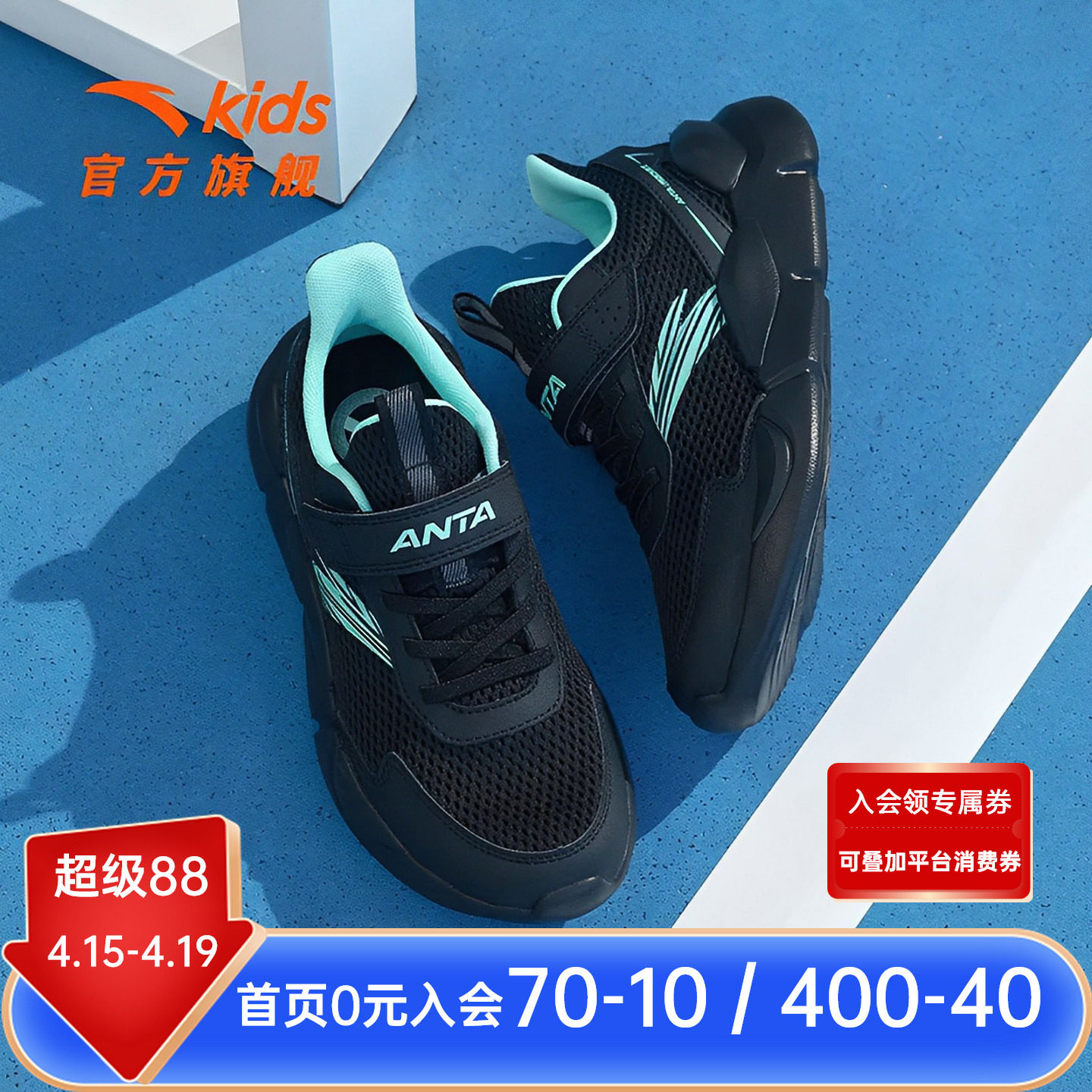 安踏儿童运动鞋男童鞋子2026夏新款透气网面童鞋青少年跑鞋跑步鞋