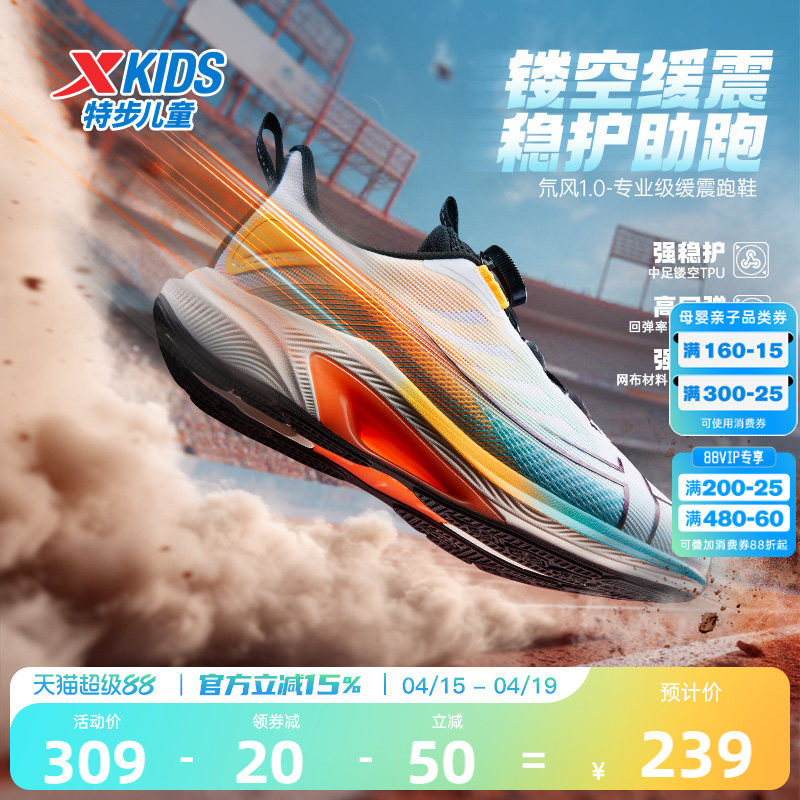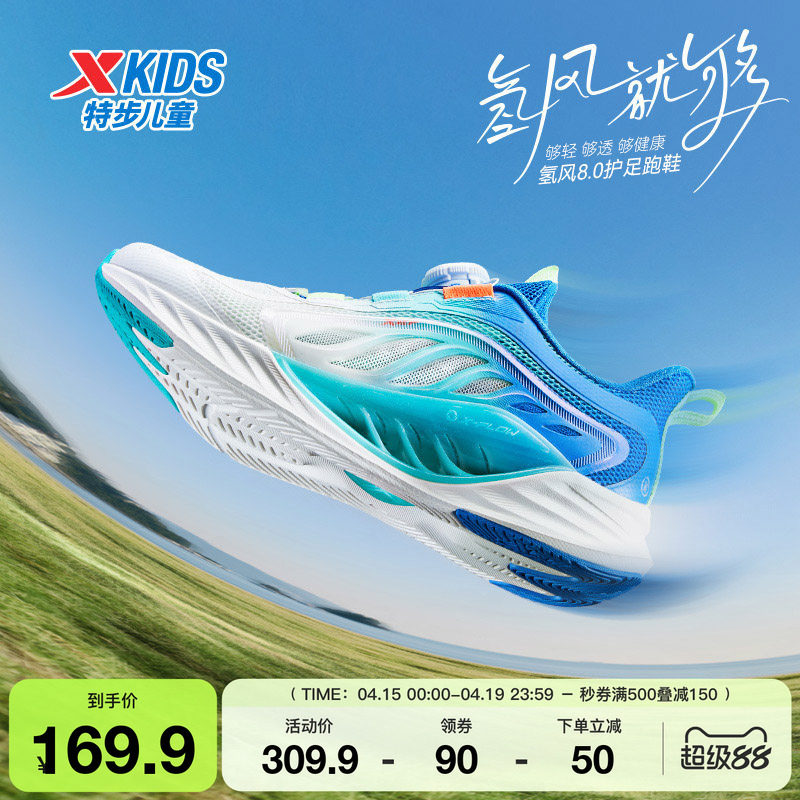氢风8特步童鞋男童运动鞋网面透气儿童跑步鞋旋转纽扣轻便青少年