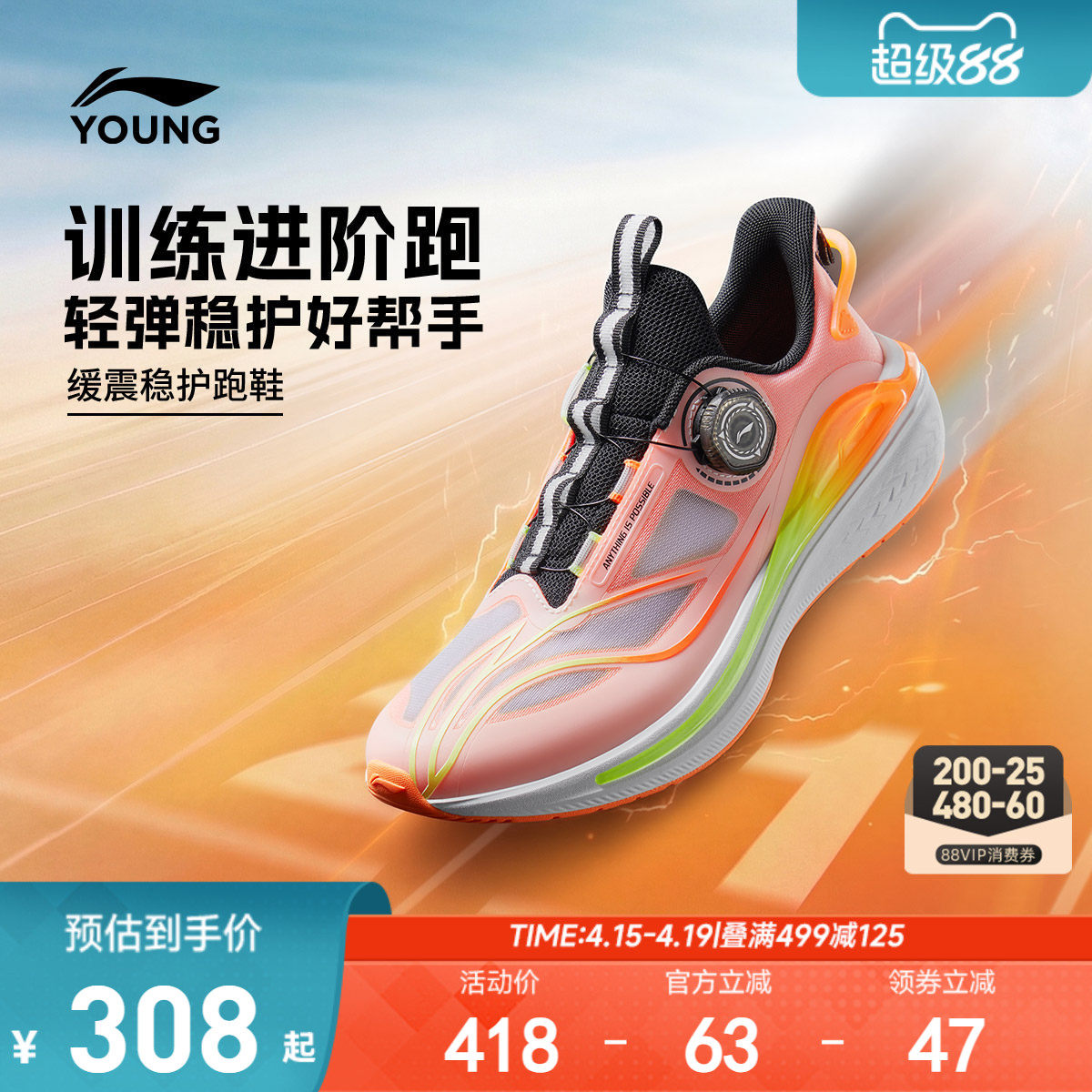 李宁儿童鞋男童运动鞋2026春夏新款大童跑步鞋青少年网面透气鞋子