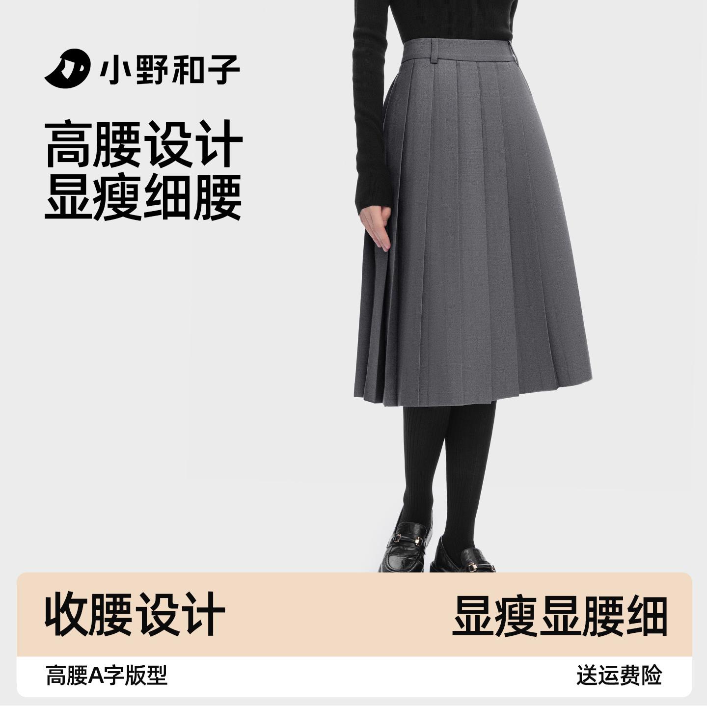 小野和子百褶半身裙女中长款秋冬高腰A字学院风灰色西装新款TK