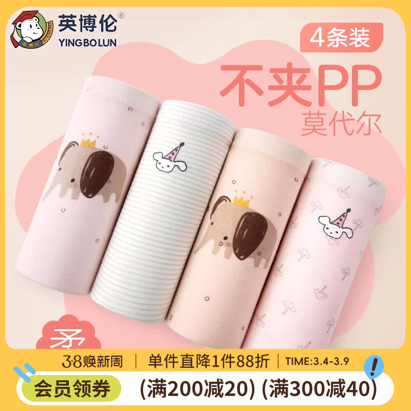 英博伦儿童内裤女童纯棉a类平角女孩中大童莫代尔三角裤四角短裤