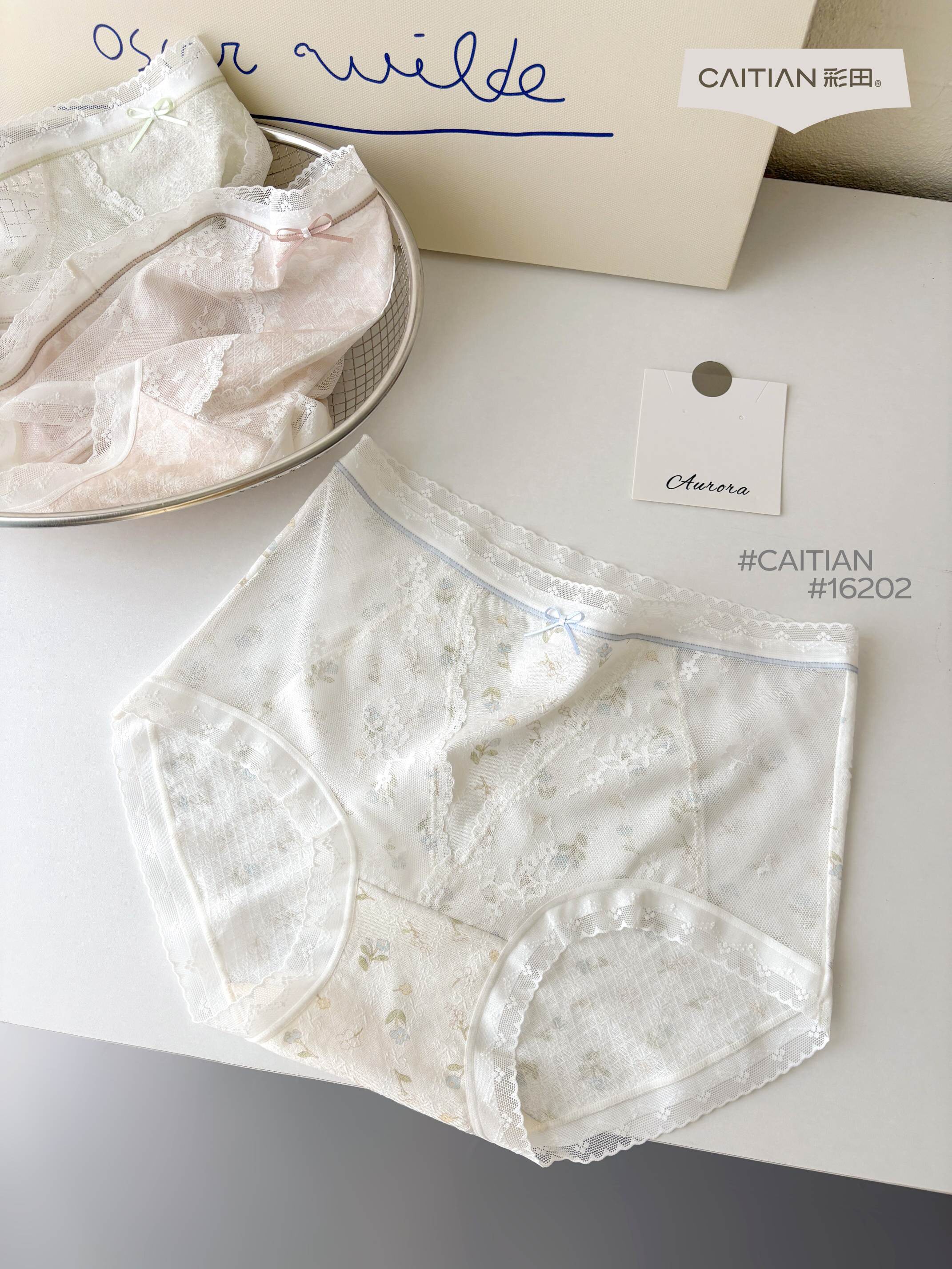 彩田莫代尔女三角裤16202田园清新内裤中腰蕾丝花边包臀三角裤头