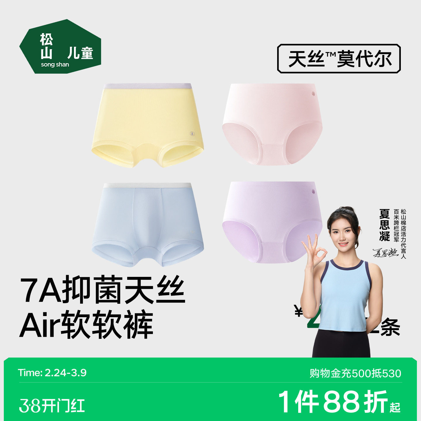 松山儿童莫代尔内裤男童四角裤女童三角裤26春夏7A抑菌AIR软软裤