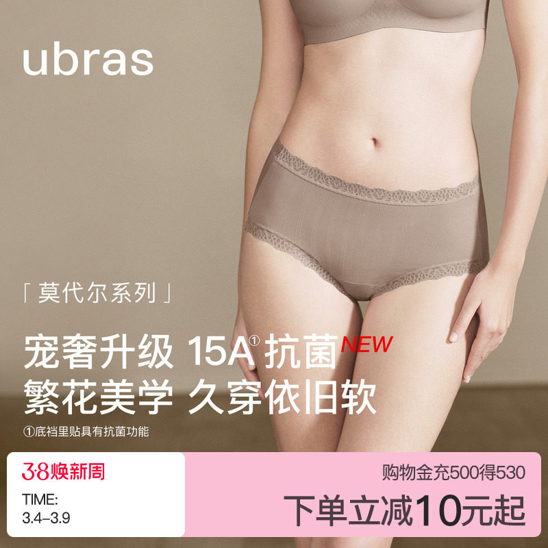 ubras莫代尔蕾丝花边内裤纯棉15A高倍抗菌底裆女士透气中腰三角裤