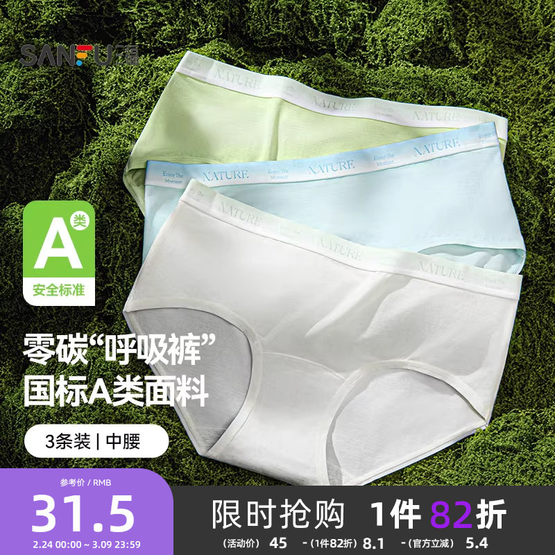 六只兔子内裤女3条装莫代尔7A抗菌舒适透气中腰包臀不夹臀三角裤