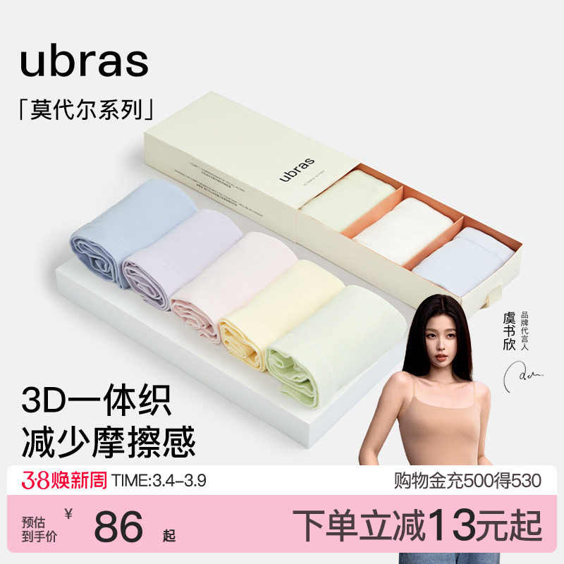 ubras莫代尔内裤女士纯棉底裆7A抗菌隐形舒适透气中腰三角裤3条装