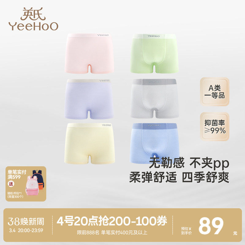 英氏儿童莫代尔内裤7A抗菌中大童三角短裤男女童平角裤不夹屁屁