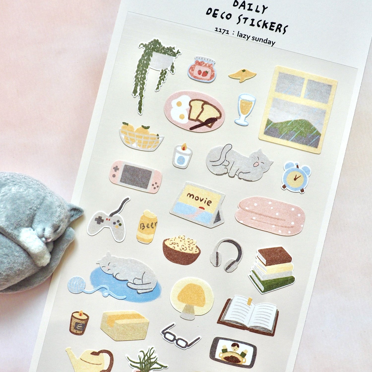 韩国suatelier 慵懒周末 女生宅家吸猫看书做菜手账diy装饰贴纸画