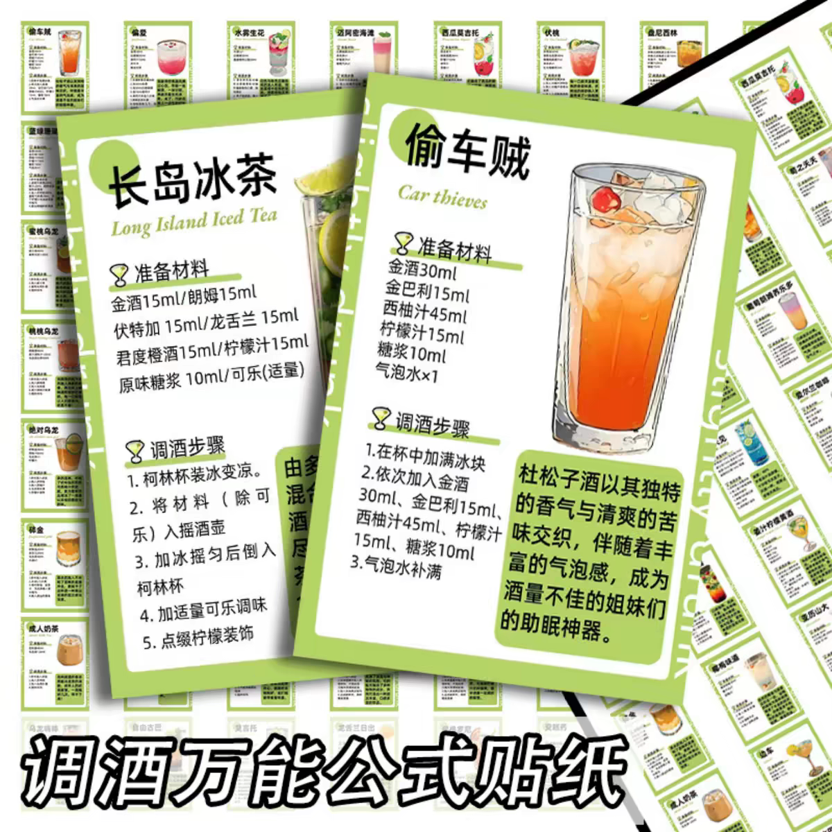 50张热销调酒公式生活小配方休闲微醺自制8+1厨房墙面水吧台桌面笔记本冰箱手机壳水杯橱柜收纳箱diy装饰贴纸