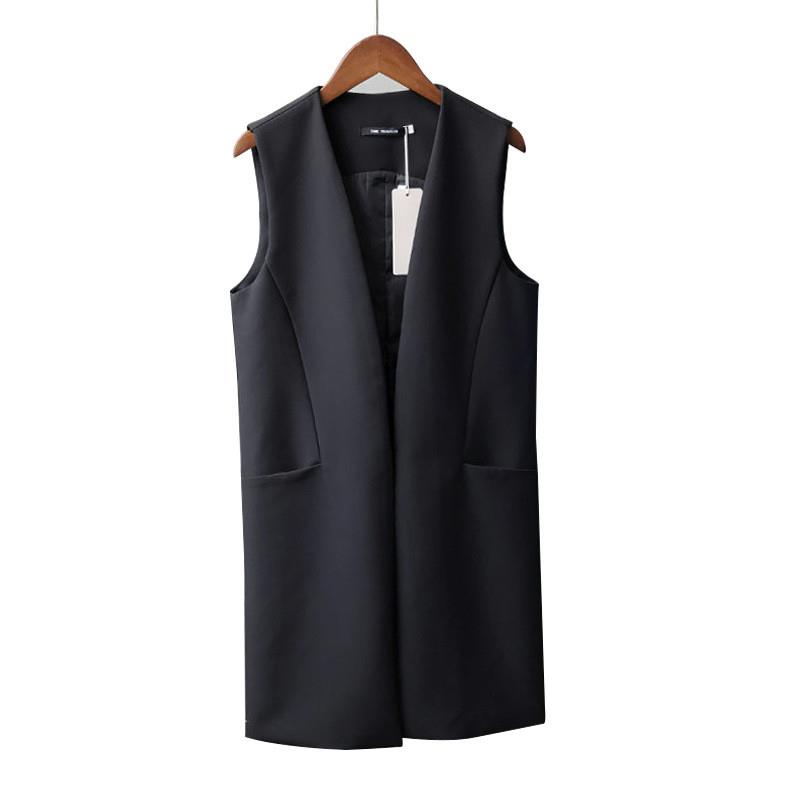 韩版OL气质宽松中长款西装马甲女L84125秋季显瘦通勤百搭无袖外套