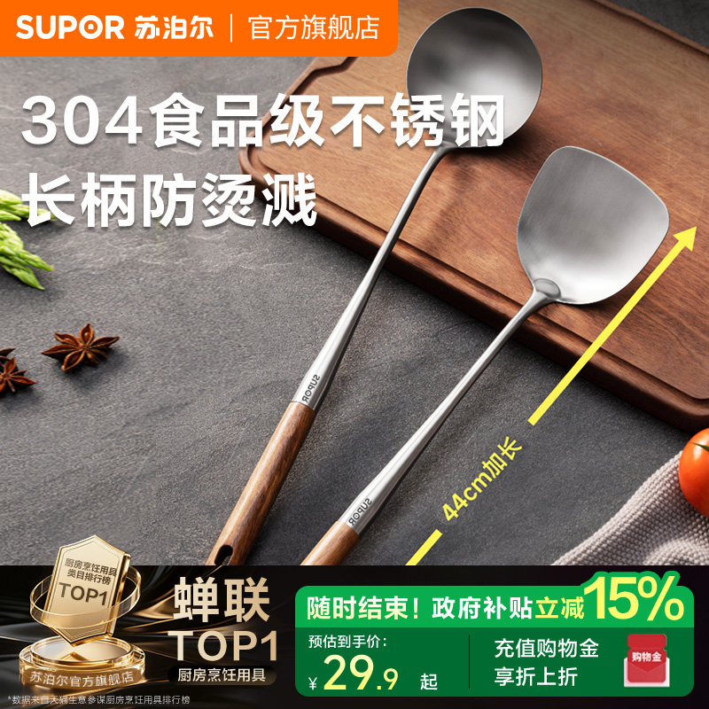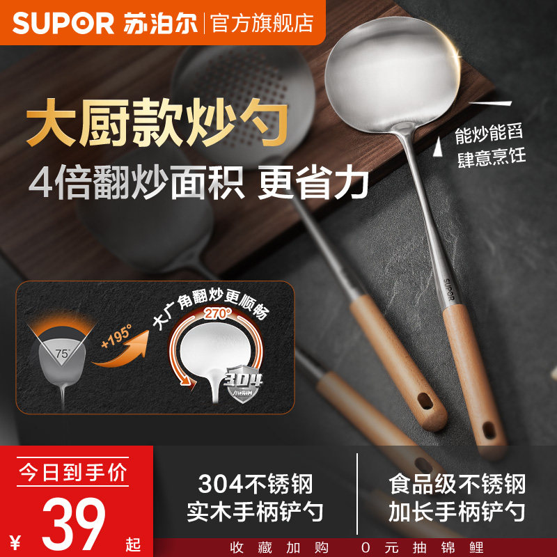 苏泊尔锅铲家用316L不锈钢炒菜的铲子铲勺漏勺汤勺家用炒勺铁锅铲