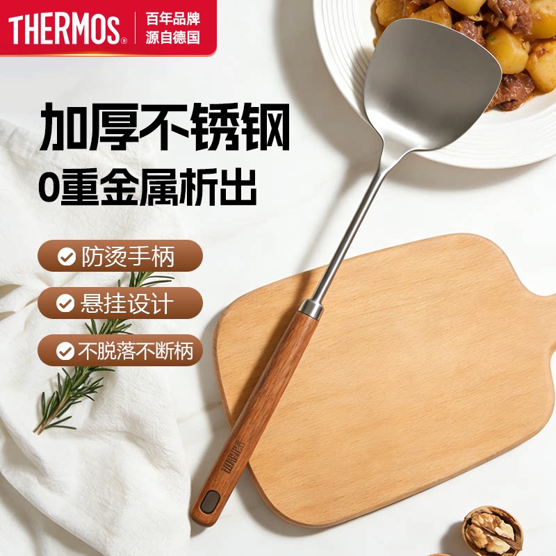 膳魔师不锈钢铲子家用铲胡桃木手柄锅铲加厚炒菜勺耐高温铁锅专用