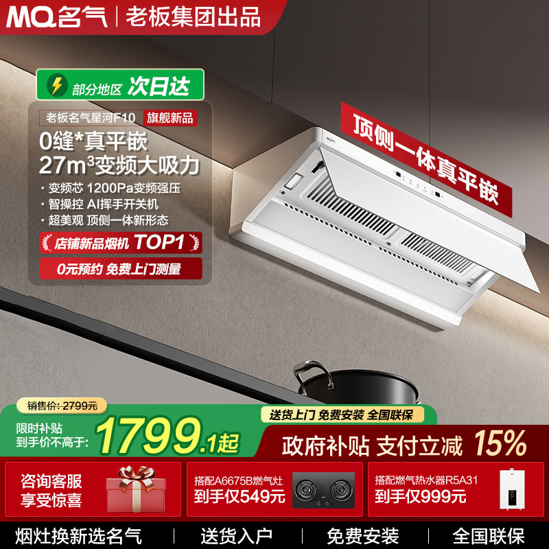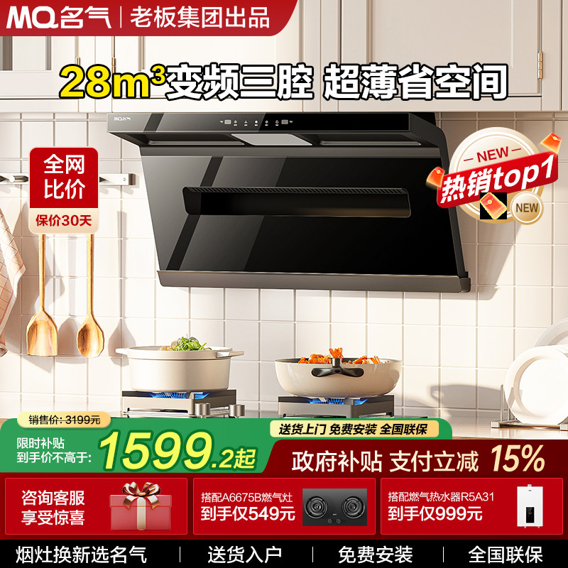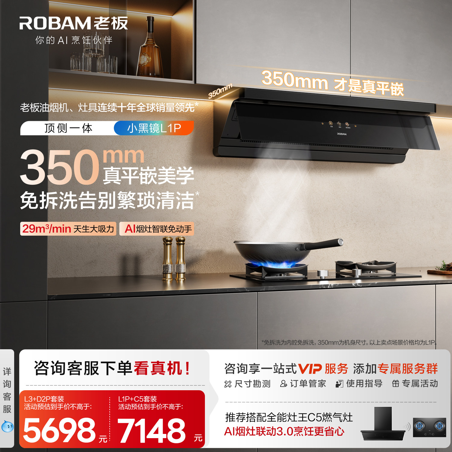 老板小黑镜L1/L3/L1P顶侧一体抽油烟机燃气灶套装家用官方旗舰店