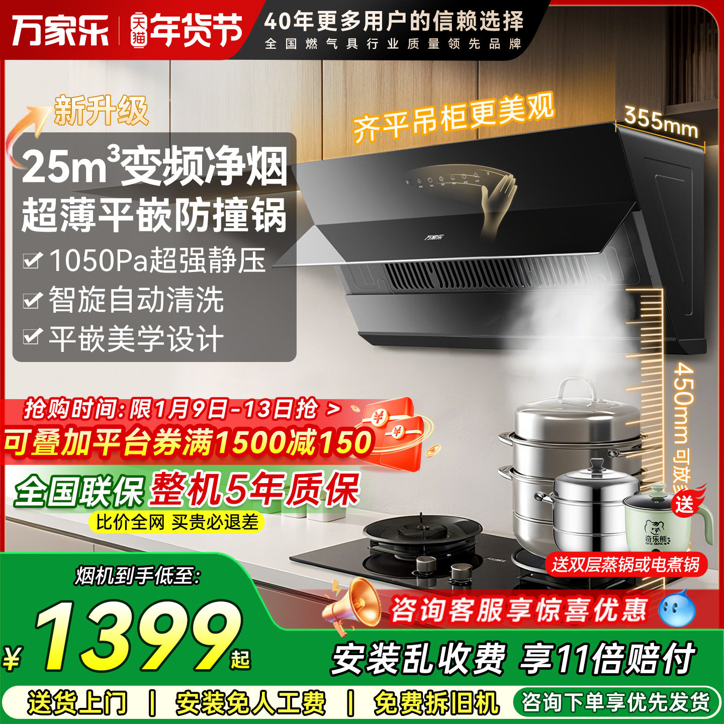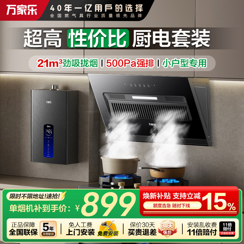 万家乐油烟机家用侧吸抽油烟机燃气灶套装厨房696小尺寸吸油烟机
