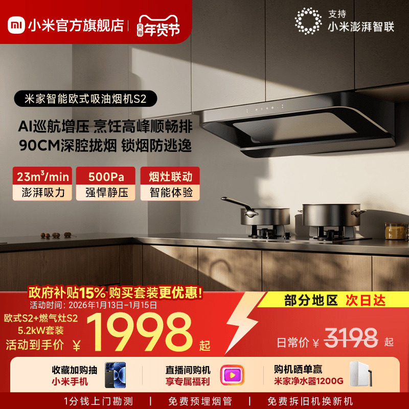 小米官方米家智能欧式S2厨房家用抽油烟机燃气灶套装正品大吸力