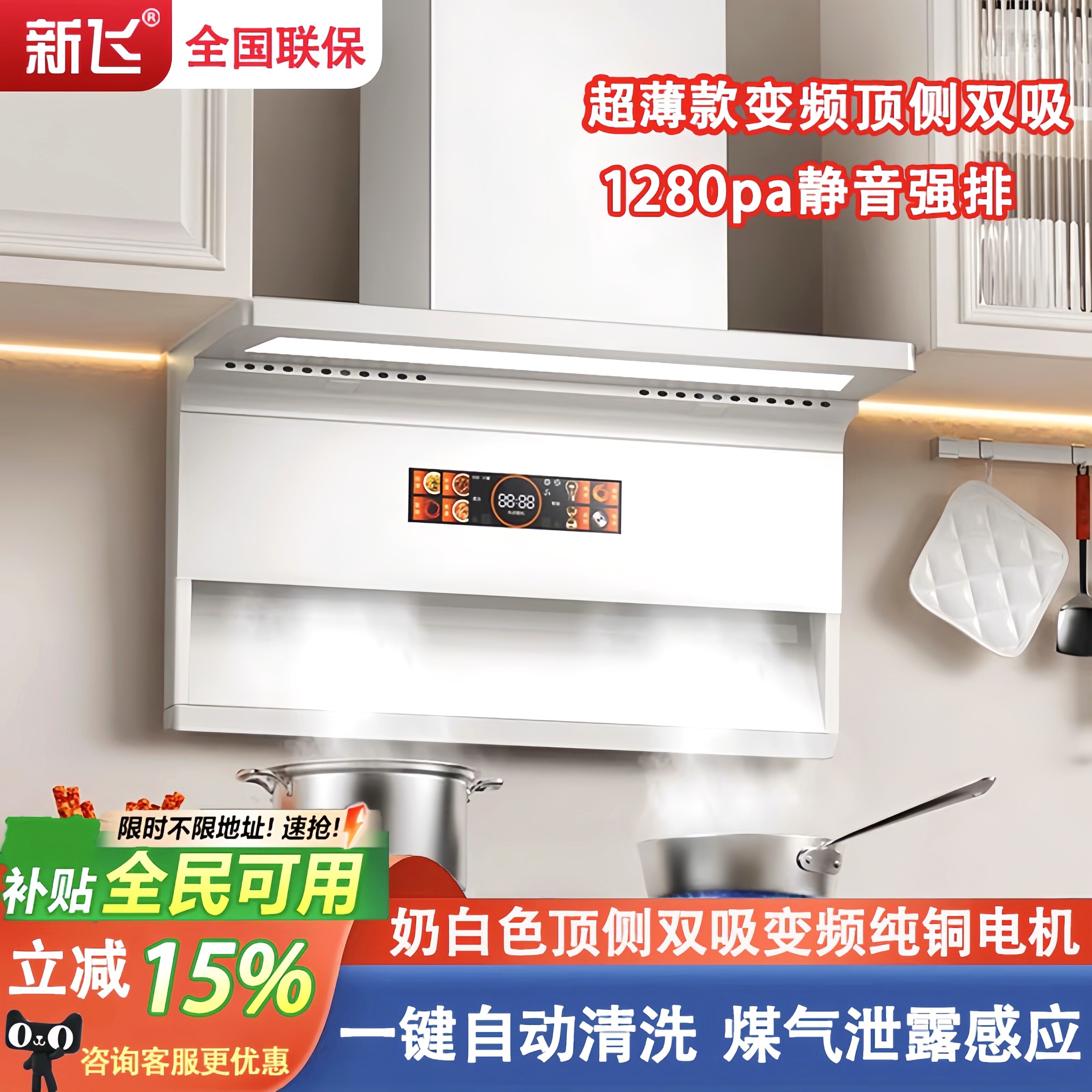 【净白百搭】优盟顶侧双吸抽油烟机燃气灶套装家用变频厨房大吸力