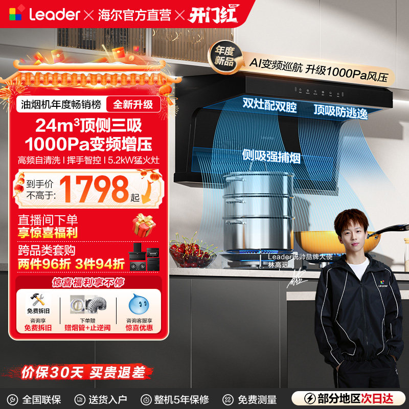 统帅Leader海尔智家大吸力抽油烟机燃气灶套装家用92DPro官方旗舰