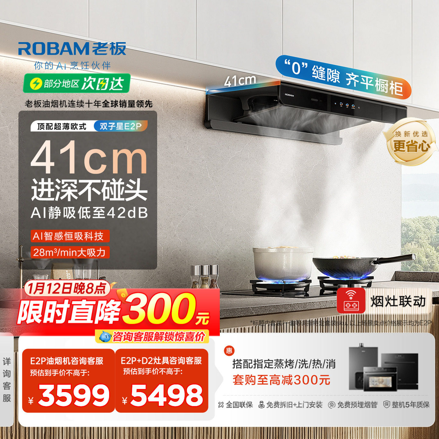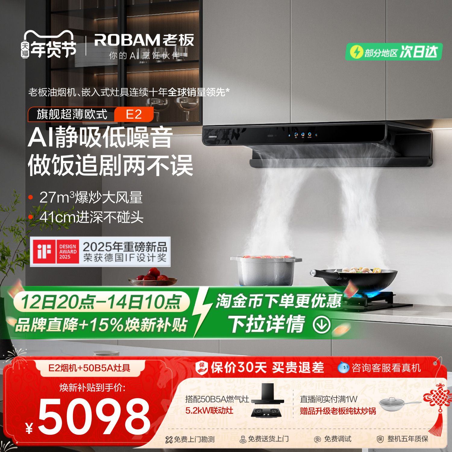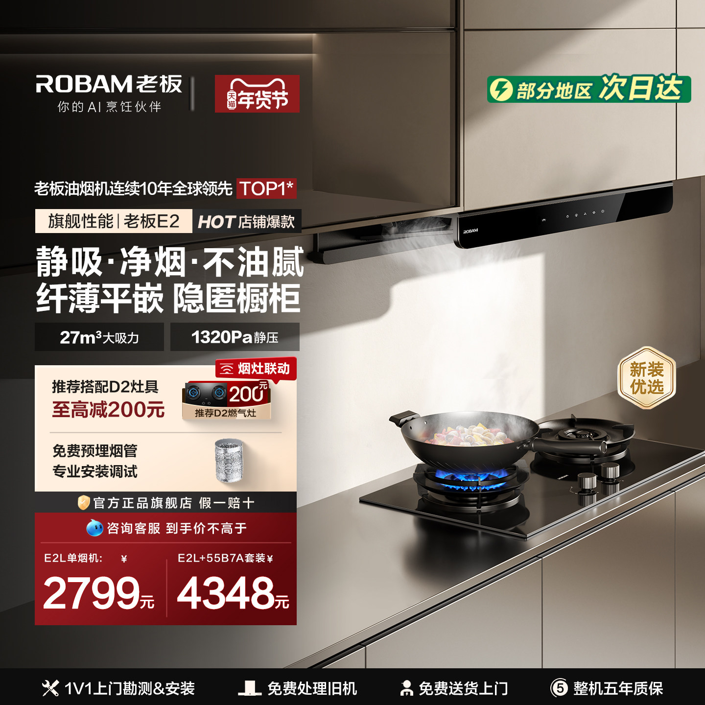 老板双子星E2/E2L/E2P吸抽油烟机燃气灶一套装家用官方旗舰店正品