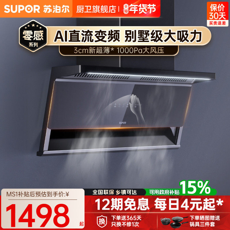 苏泊尔油烟机MS1顶侧双吸燃气灶家用厨房大吸力抽油烟机套装烟机