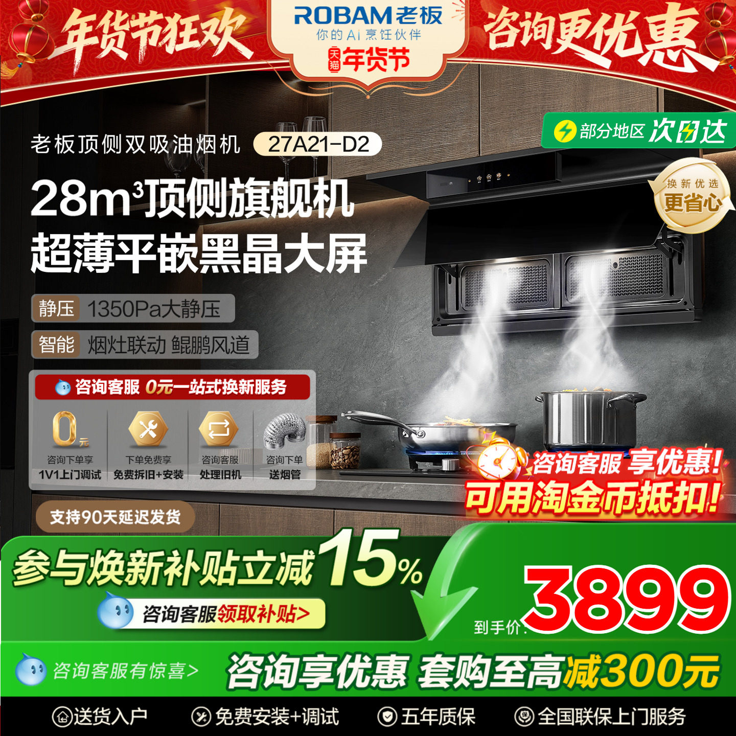 老板小黑翼D2/D1U抽油烟机燃气灶套装顶侧双吸厨房家用官方正品