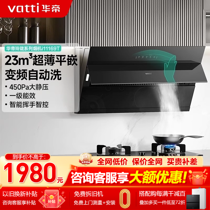 华帝抽油烟机燃气灶套装i11169T家用烟机灶具厨房三件组合套餐