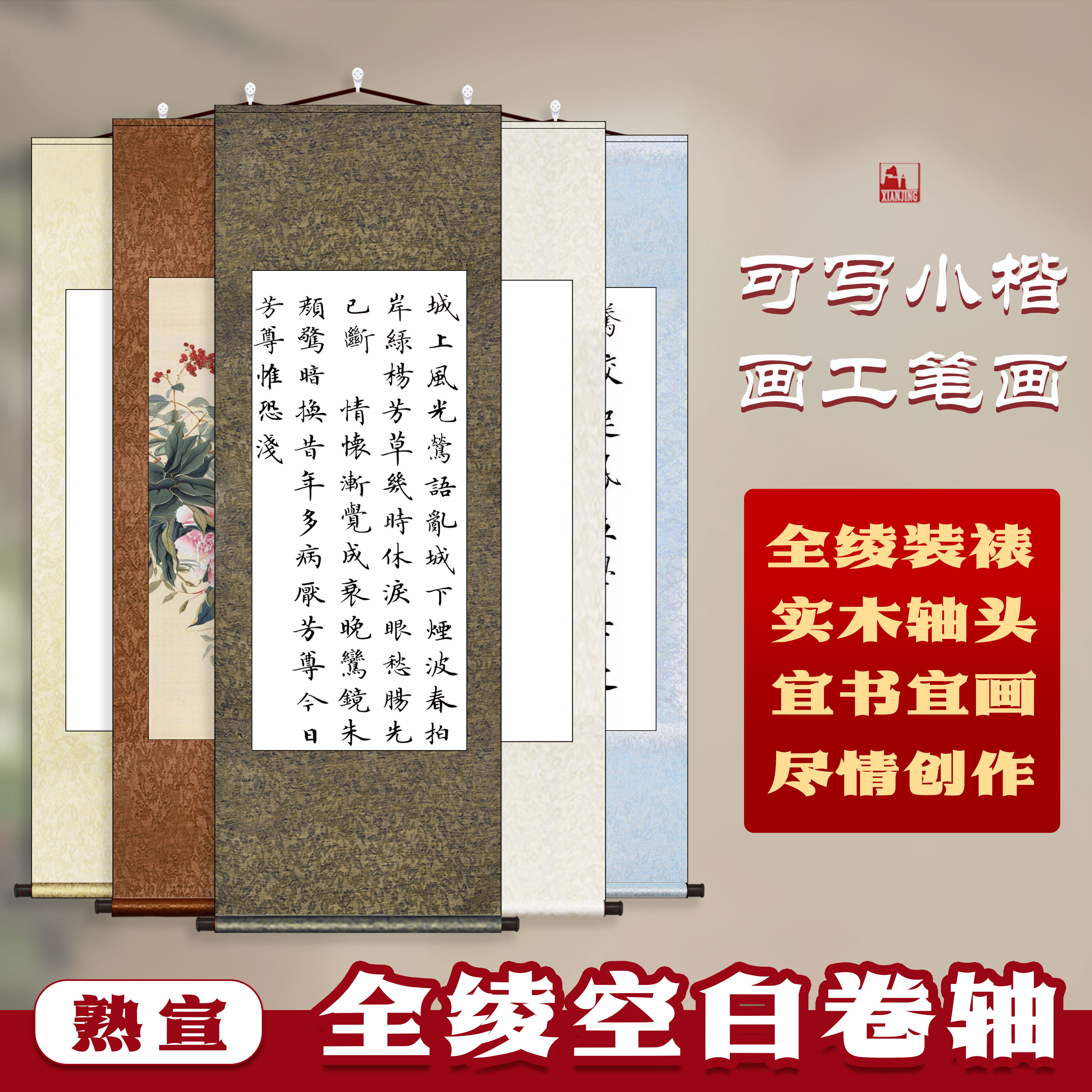 宣纸空白卷轴书画半生半熟生宣仿古国画书法装裱加厚定婚成品挂轴