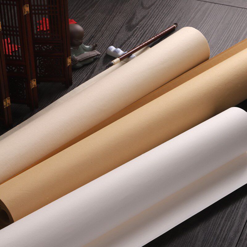 加厚100米仿古长卷宣纸书法专用练字卷轴半生半熟字画毛笔字软笔中国画白描空白练习作品纸工笔画美术国展纸
