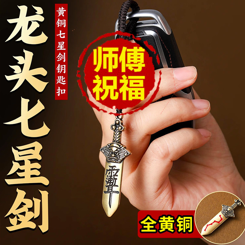 黄铜朱砂七星剑紫薇讳吊坠男女平安随身携带车钥匙扣黄铜挂件摆件