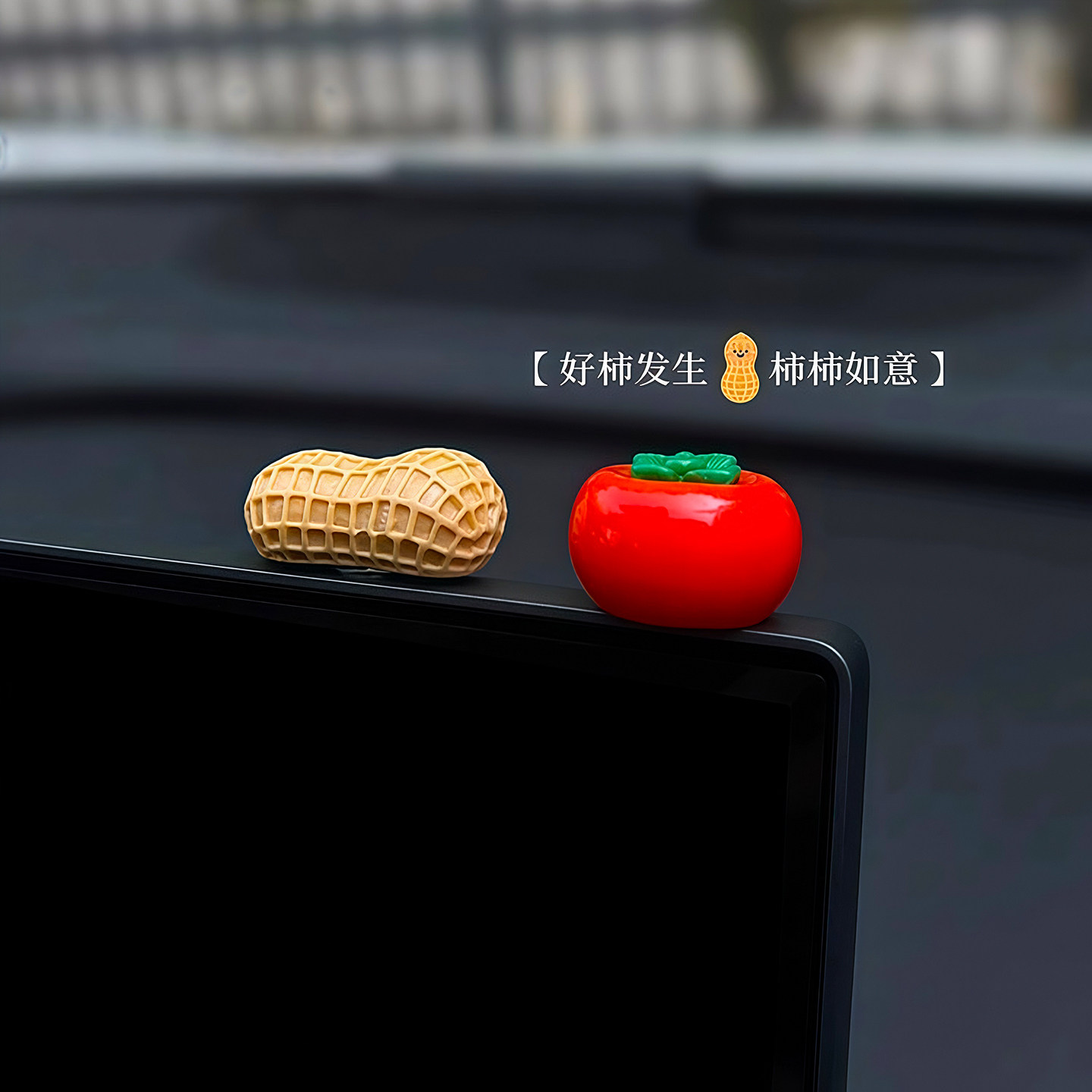 新年好事发生汽车摆件中控台个性卡通柿子花生车载显示屏幕装饰贴