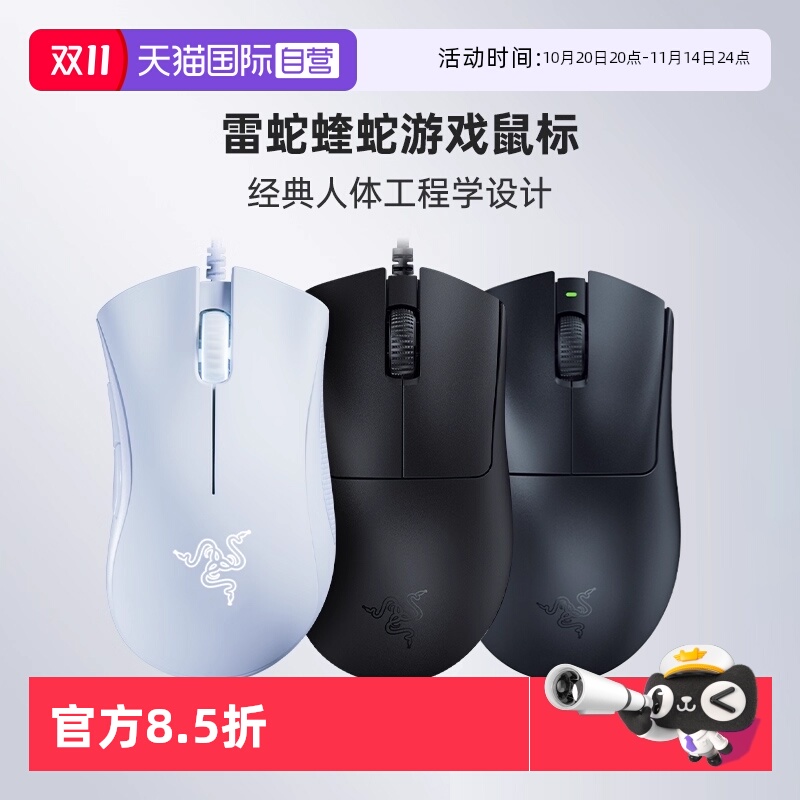 Razer雷蛇炼狱蝰蛇标准版黑白色USB电脑电竞吃鸡lol有线游戏鼠标