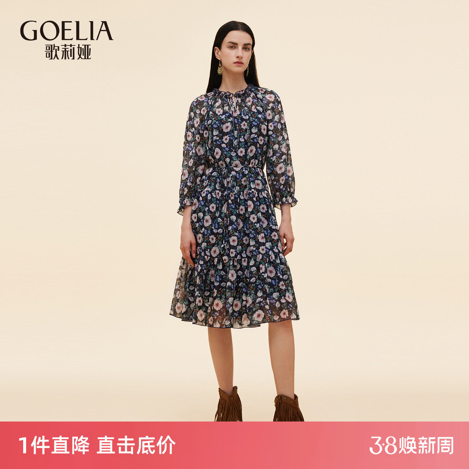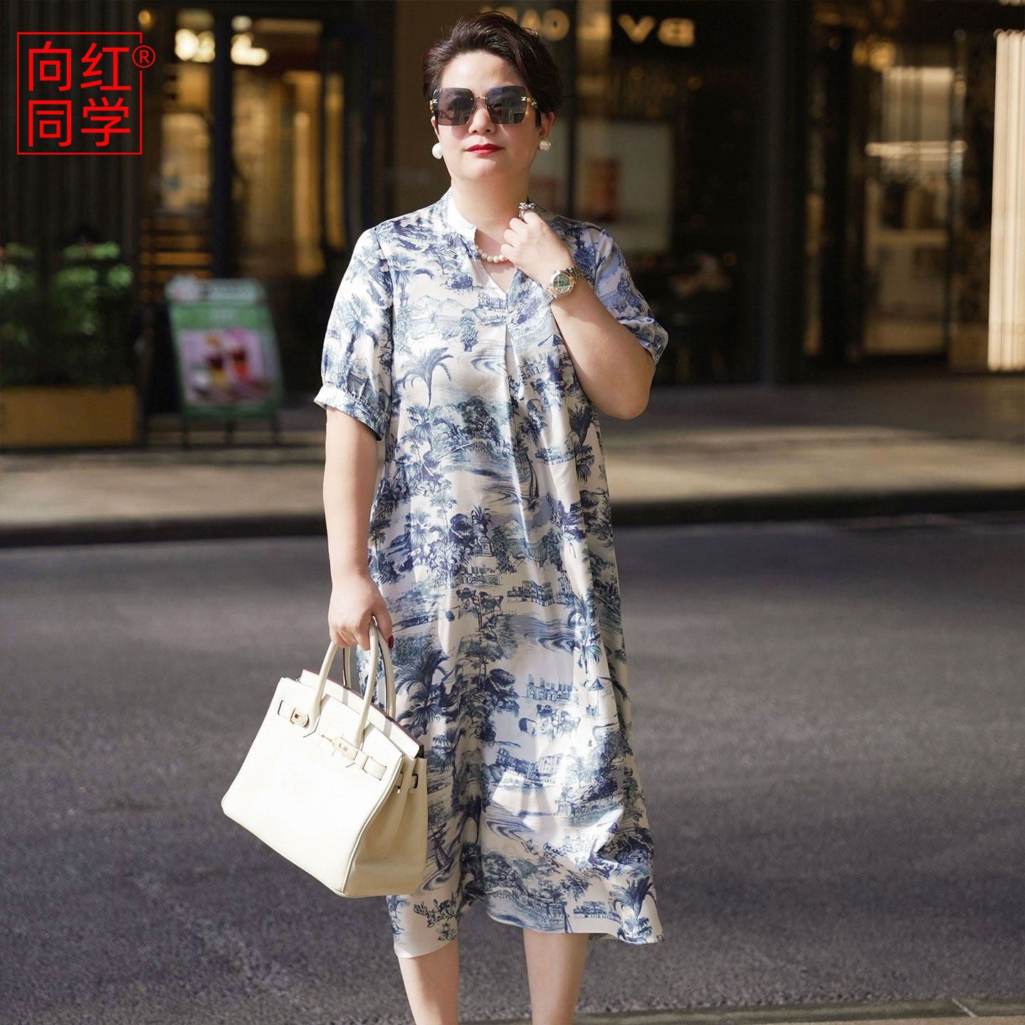 向红同学大码女装2026夏季流行单品真丝桑蚕丝印花休闲连衣裙0396