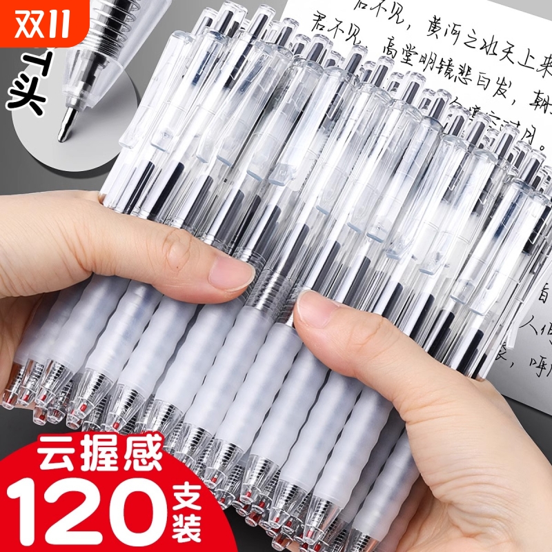 按动中性笔云握st笔头舒适软握刷题笔按压式软胶黑笔速干顺滑学生专用笔学生用0.5mm黑色水笔碳素笔办公批发