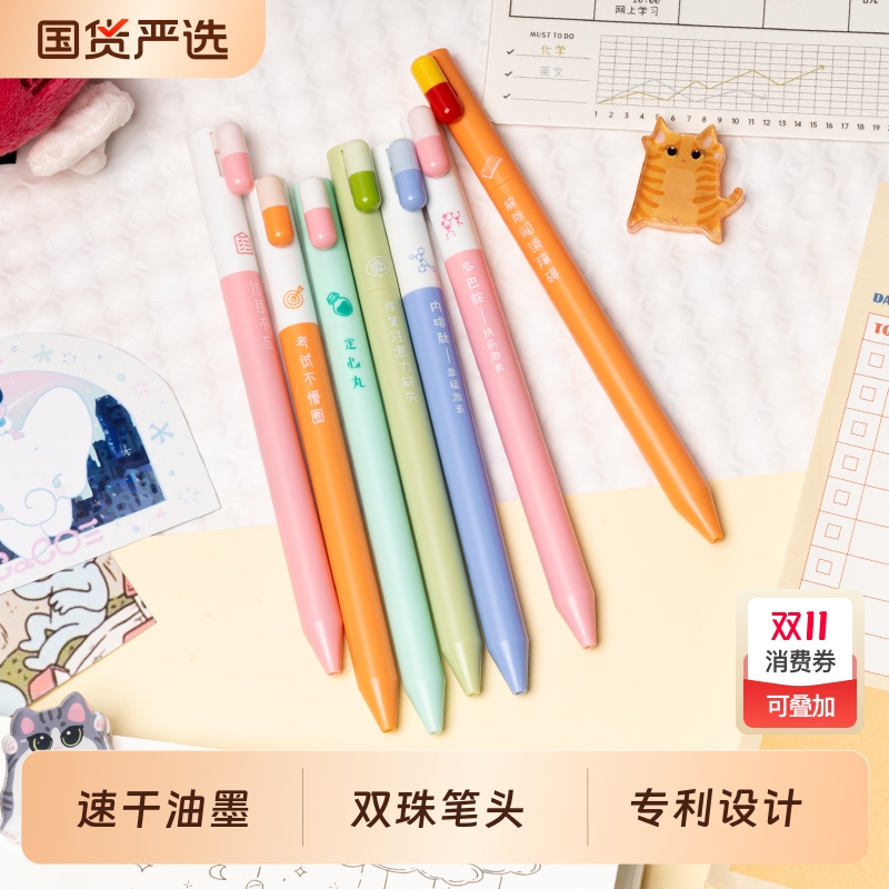 创意爱心胶囊中性笔黑色低重心侧按动ST刷题笔ins高颜值顺滑速干中性笔考试必备葫芦头刷题笔0.5mm黑色水笔