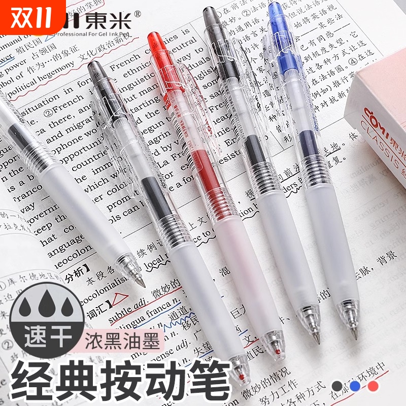 东米668按动中性笔学生用刷题笔书写顺滑笔双珠子弹头黑红蓝学生考试用0.5mm黑色水笔简约办公按压式签字笔