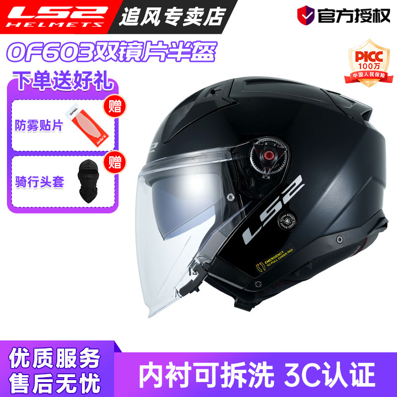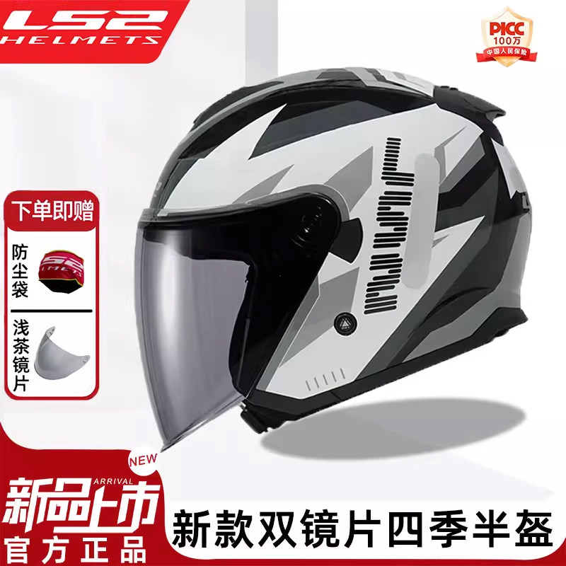 LS2半盔摩托车双镜片头盔男四季女四分之三电动车3C大码冬季OF603