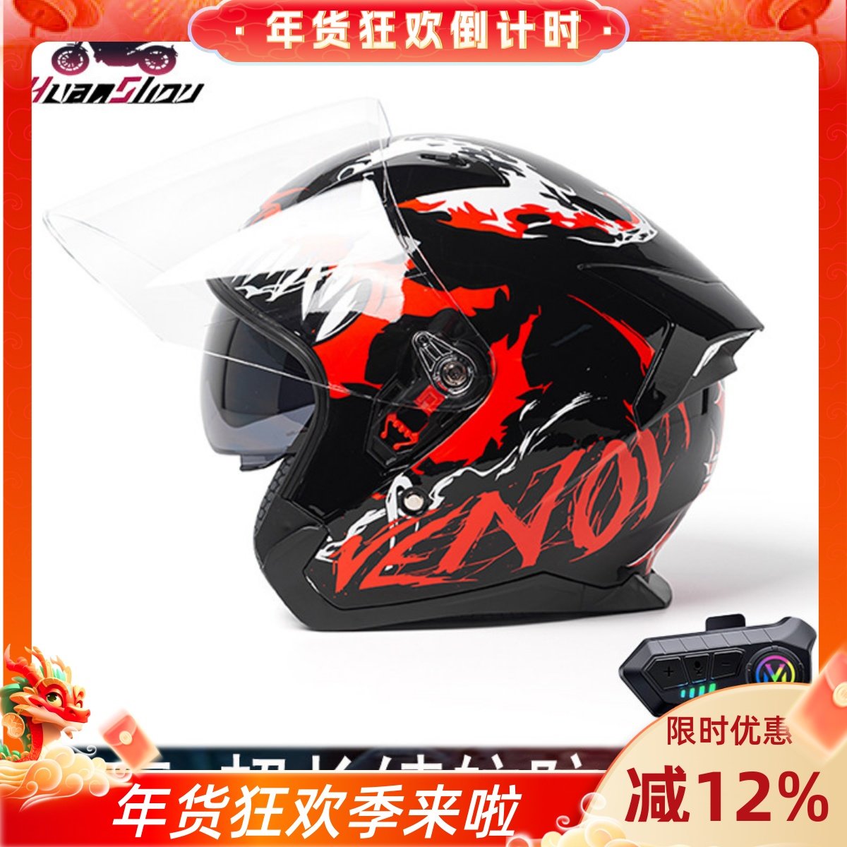 双镜片头盔摩托车全盔男电动车半盔女3c认证骑行安全帽四分之三盔