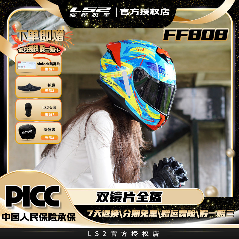LS2摩托车双镜片头盔男女机车全盔赛车四季通用防雾小尾翼FF808
