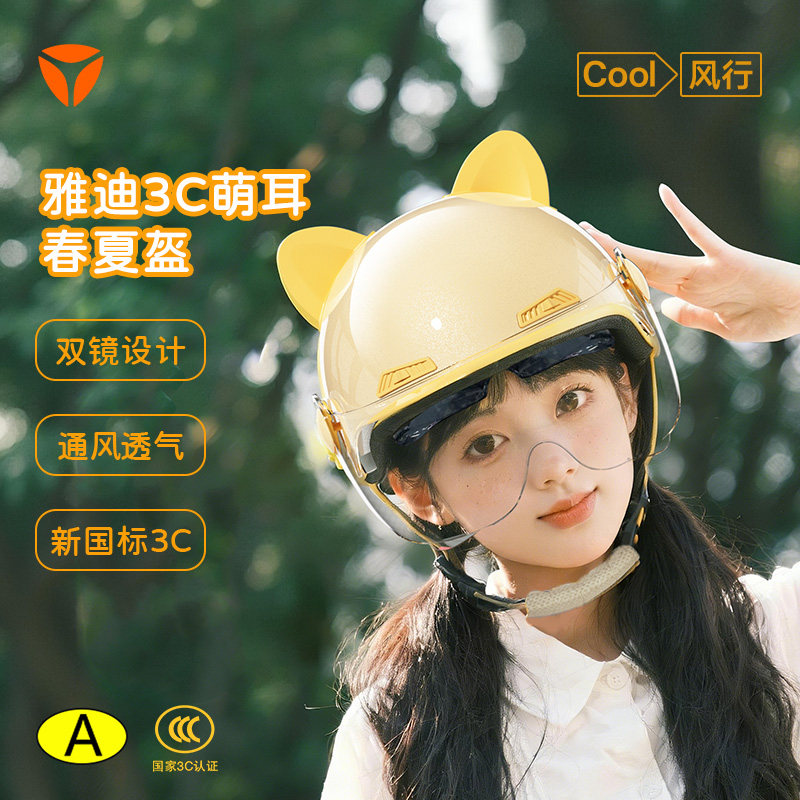 雅迪电动车头盔双镜片头盔电动摩托车四季新国标3C认证男女电瓶车