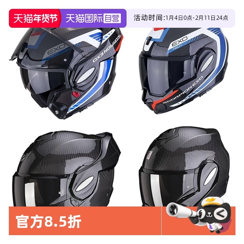 【自营】SCORPION EXO蝎子后空翻摩托车揭面盔碳纤维双镜片头盔