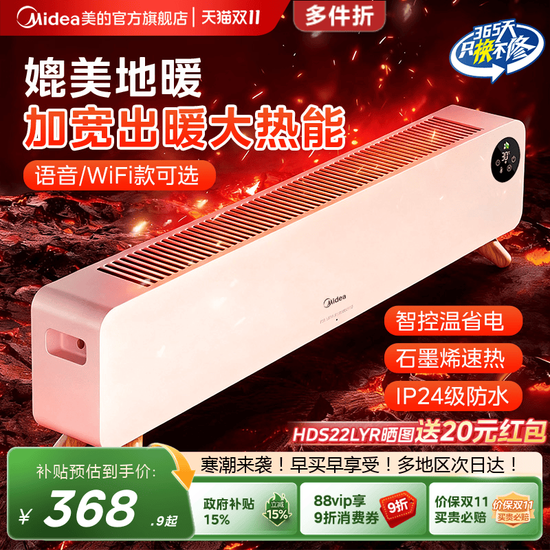 [多地次日达]美的踢脚线取暖器石墨烯暖风机语音加湿地暖电暖气