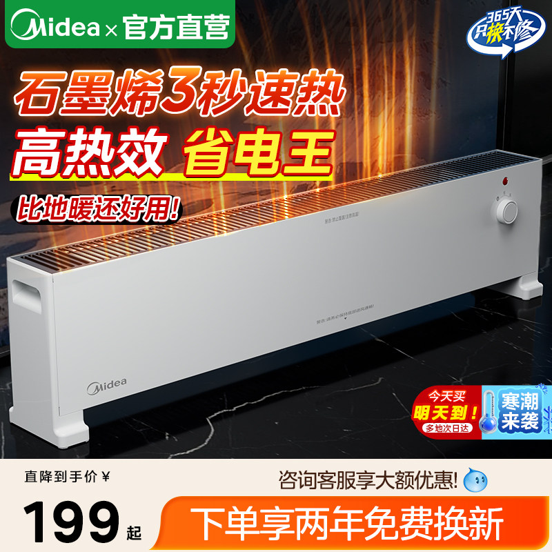 美的踢脚线取暖器家用石墨烯电暖气冬季神器大面积2025新款暖风机