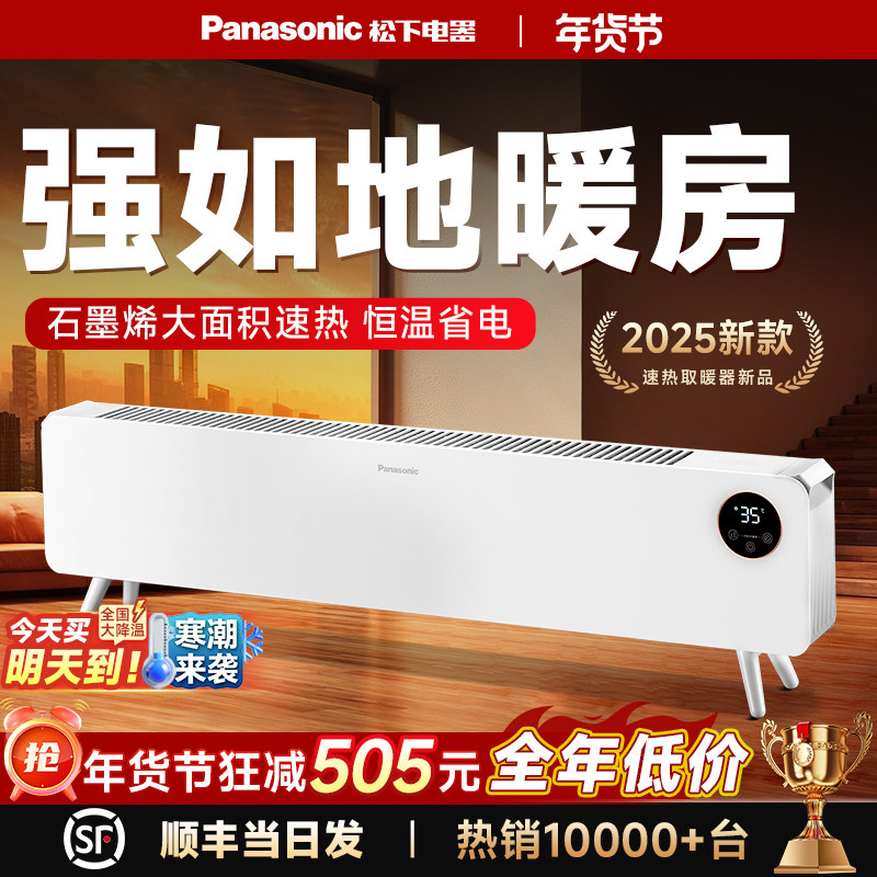 松下热浪取暖器家用踢脚线电暖气片神器冬季2025新款石墨烯暖风机