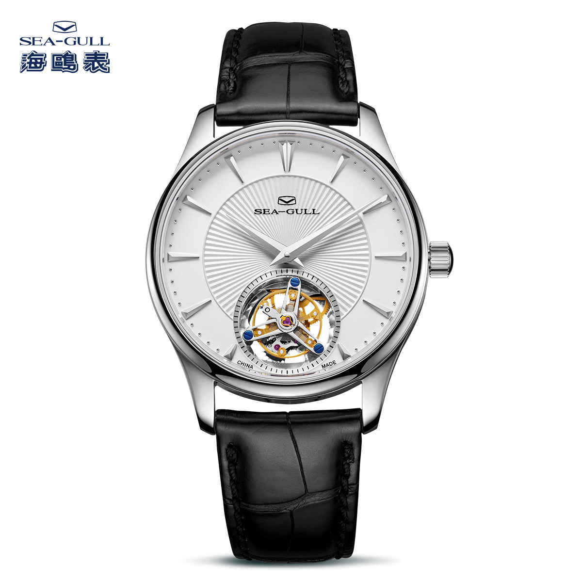 海鸥表陀飞轮机芯机械腕表商务休闲鳄鱼皮纹手动上链男款手表8810