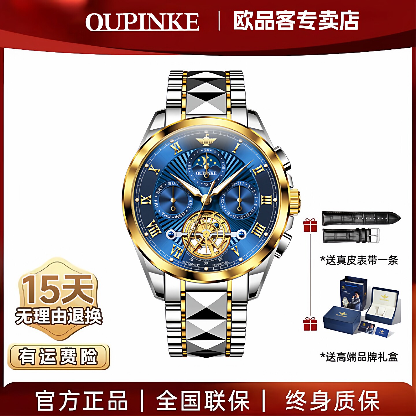 2026新款瑞士欧品客正品男士全自动机械腕表多功能陀飞轮防水夜光