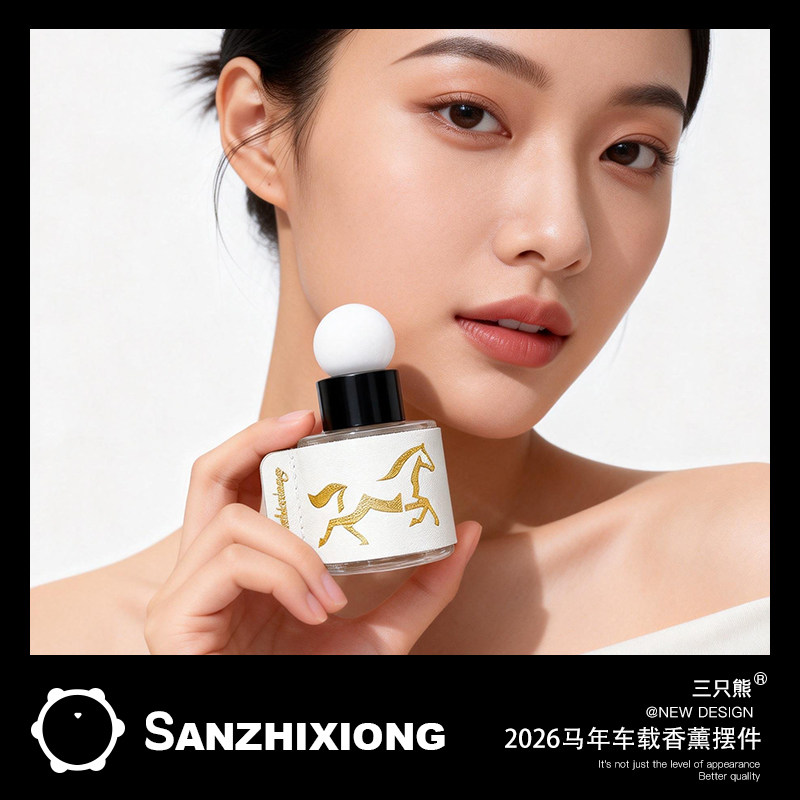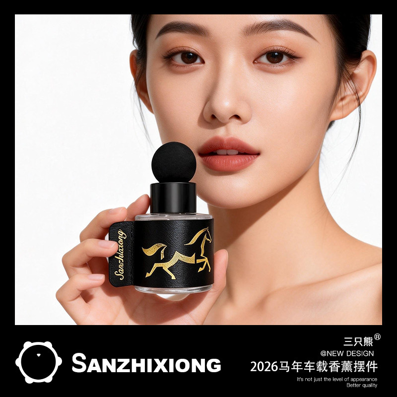 马年车载香薰摆件汽车中控台座式香水摆件真皮车内香薰车装饰摆件