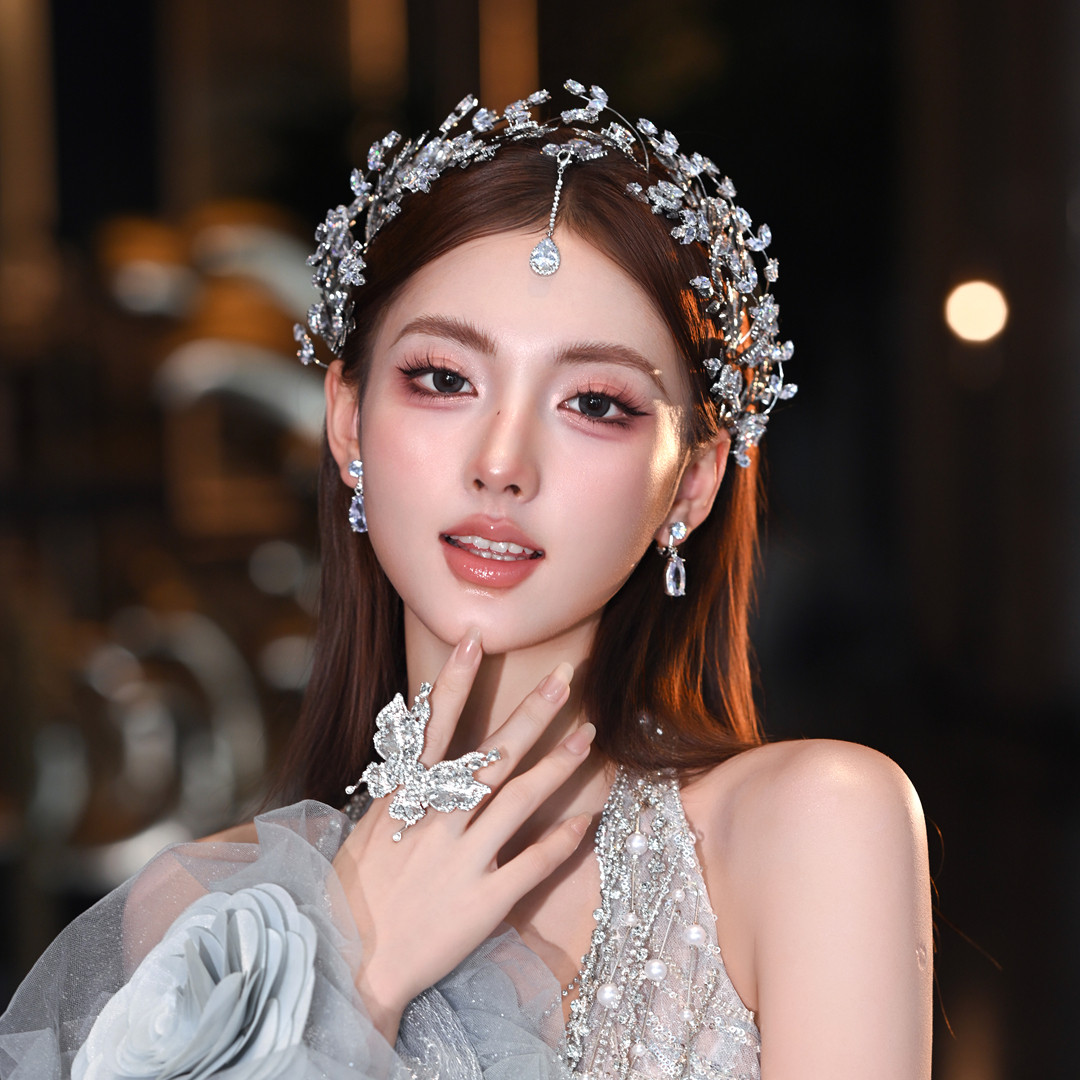 甜美仙气新娘皇冠头饰边夹耳环重工蝴蝶闪亮发箍婚纱晚礼服发饰品