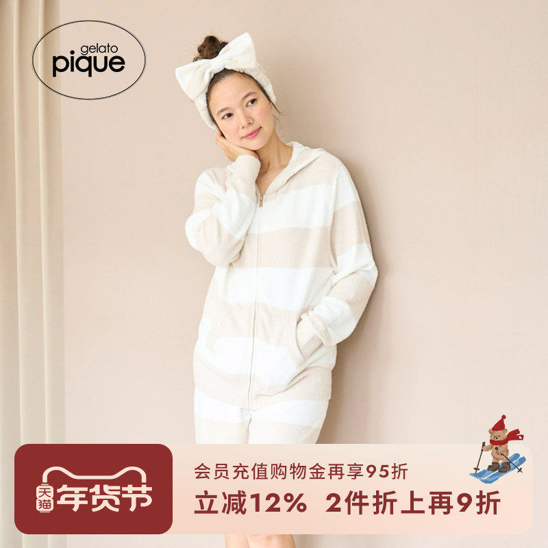 gelato pique秋冬女发带薄半边绒条纹蝴蝶结发箍PWGA245619