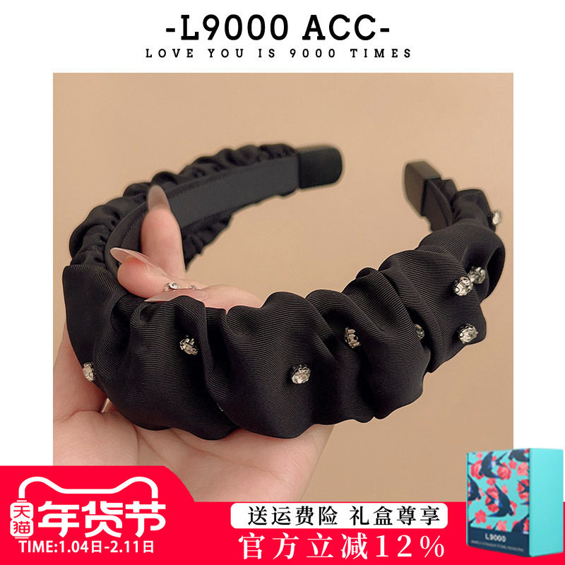 冬季黑色褶皱发箍女2025新款仿钻头饰发卡高档气质洗脸头箍女发带