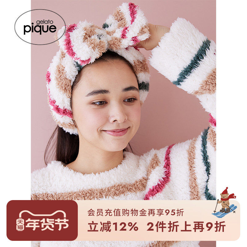 gelato pique秋冬女发带薄半边绒条纹蝴蝶结发箍PWGA244547